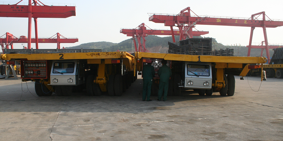 公司現有各型號液壓動力平板運輸車30余臺,SPMT128軸線,主要型號包括KOTO-50噸、 KOTO-75噸、 KOTO-100噸、 KOTO-125噸、 KOTO-150噸、 KOTO-200噸、 KOTO-260噸、 KOTO-320噸、 KOTO-380噸、 KOTO-430噸、 KOTO-480噸、 KOTO-500噸、 KOTO-550噸、 KOTO-600噸、 KOTO-650噸、 KOTO-800噸、 KOTO-1000噸等。